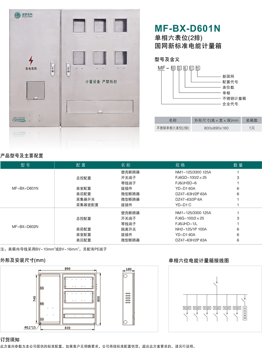 MF-BX-D601N單相六表位(2排)國(guó)網(wǎng)新標(biāo)準(zhǔn)電能計(jì)量箱